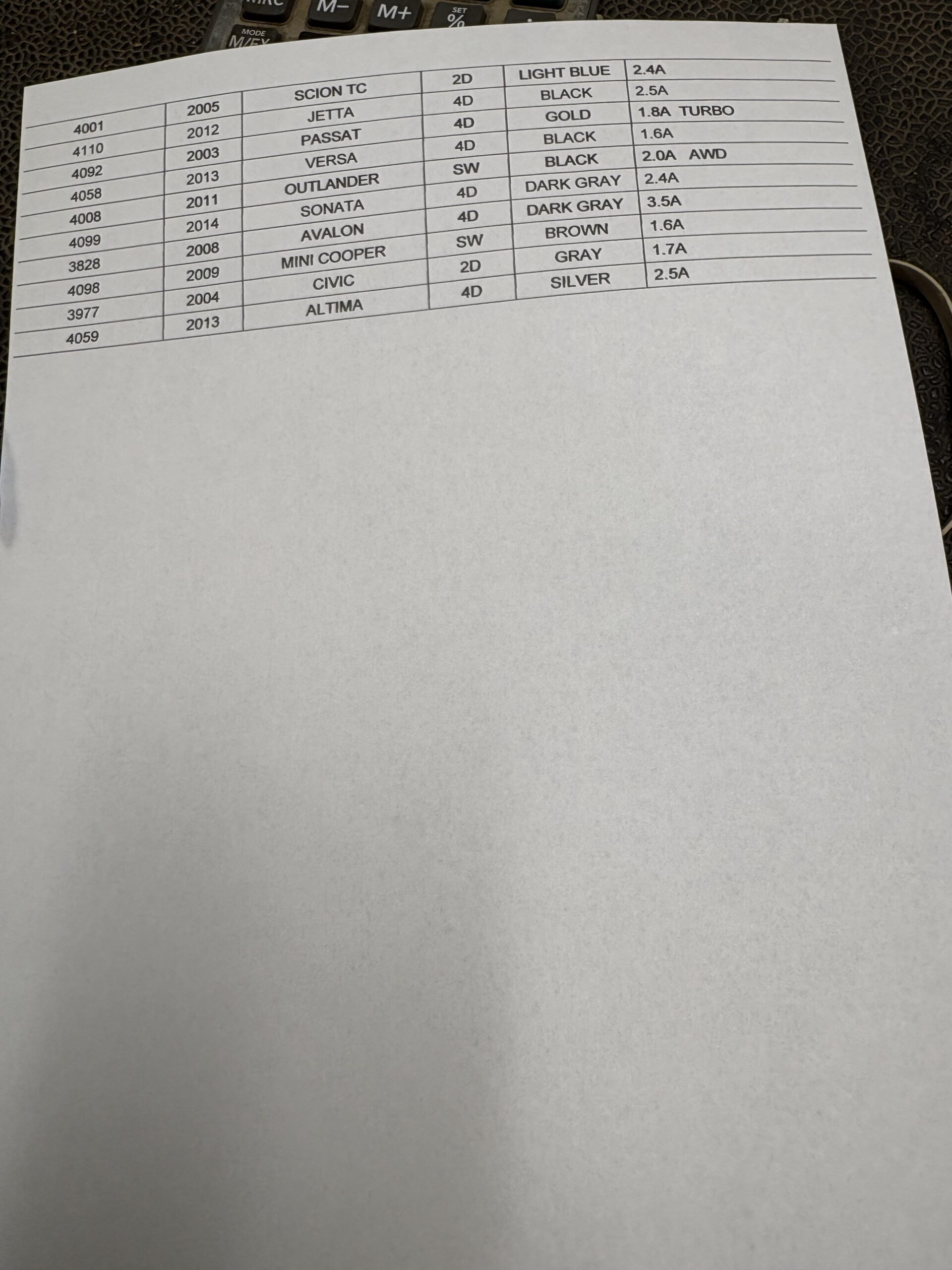 Price List